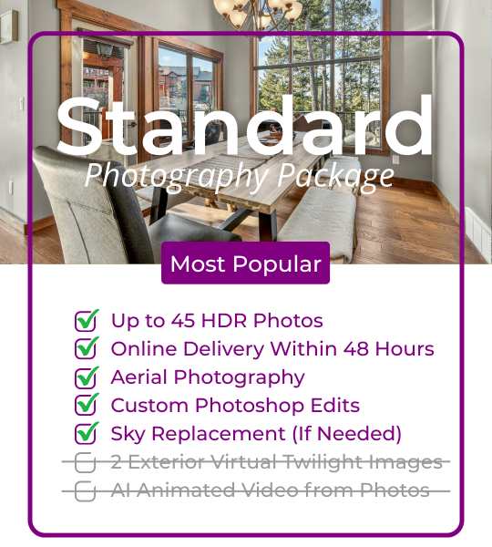 1. Client: Unless otherwise stated the “Client” is deemed to be the person who confirms the booking with the photographer. 2. Agent or Authorized Representative of Property Owner: Where the booking is confirmed by an authorized agent or representative of the property owner these Terms of Service are deemed to have been accepted by the property owner also. 3. HDR: Interior images will typically (at the photographer’s discretion) be High Dynamic Range (HDR) i.e. bracketed exposures merged to capture full tonal range including interior shadows, highlights, and window views. 4. Style: The client shall notify the photographer in advance if a specific post-processing style is required otherwise post-processing creative style shall be at the photographer’s discretion. All images shall be individually post-processed for optimum final image result. 5. Photoshop: Major image Photoshop editing, virtual staging and removal or replacement of image elements (e.g. sky replacement) are not included unless otherwise stated but may be available at an additional cost (hourly rate) where possible. 6. IGUIDE Floorplans: All dimensions and floor areas must be considered approximate and are subject to independent verification by the client 7. Delivery: Proof images shall typically be delivered within 48 hours online unless otherwise stated. Final images will be available for client download within 24 hours of final payment by the client. 8. Changes & Adjustments: Price includes one round of minor edits or adjustments to images if required following review of proof images by the client. 9. Licence: Price includes a licence for unrestricted non-transferable use by the client. Copyright is retained by the photographer. 10. Travel: Travel is included for all road accesible locations between Canal Flats and Spillimacheen BC (the Columbia Valley). Other locations may incur a reasonable travel fee. If additional visits are required travel costs shall be extra. 11. Confirmed Booking & Payment: 50% payment to confirm the booking, balance due upon approval of proofs and prior to delivery of download link. 12. Security: The Photographer shall use care and attention to leave doors and windows, fittings and fixtures on the property as found however at all times without exception the property owner or agent or authorized representative is solely responsible for ensuring the property is secure, heat, lights, alarm and other fittings and fixtures are set as desired following the photography session. 13. Indemnity: The Client, Agent and Owner (as applicable) hereby indemnify and hold harmless the Photographer for any claim arising from the provision of photography services and the publication of any photographs by the Photographer or any other person.